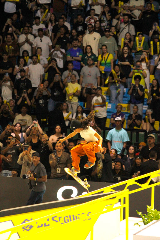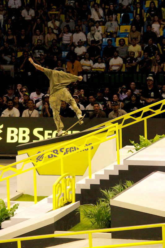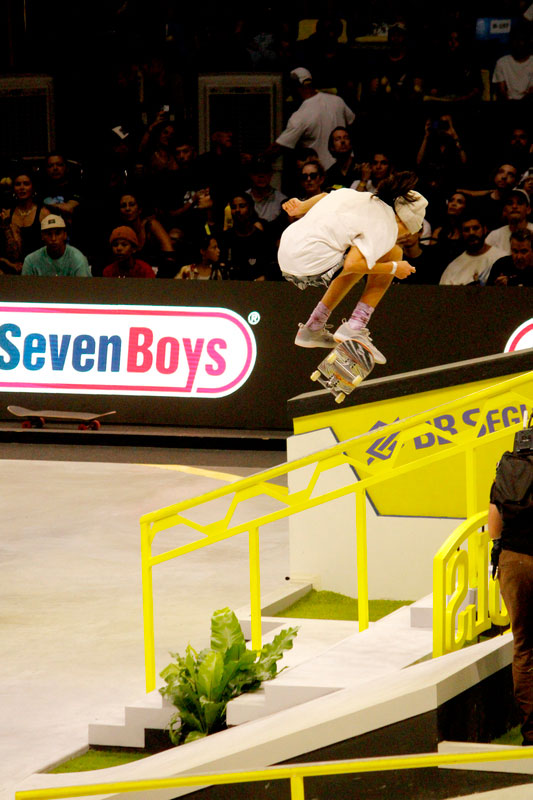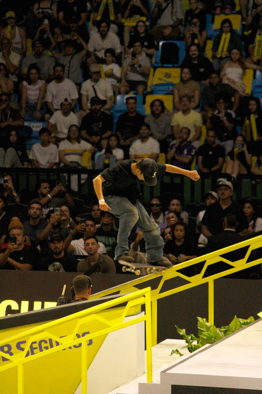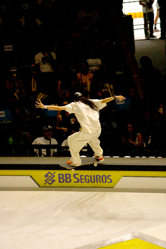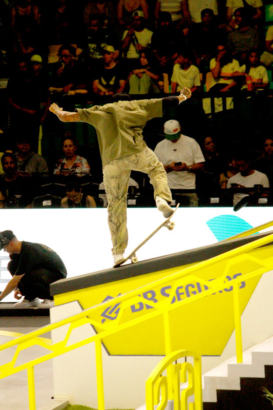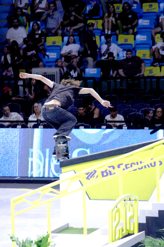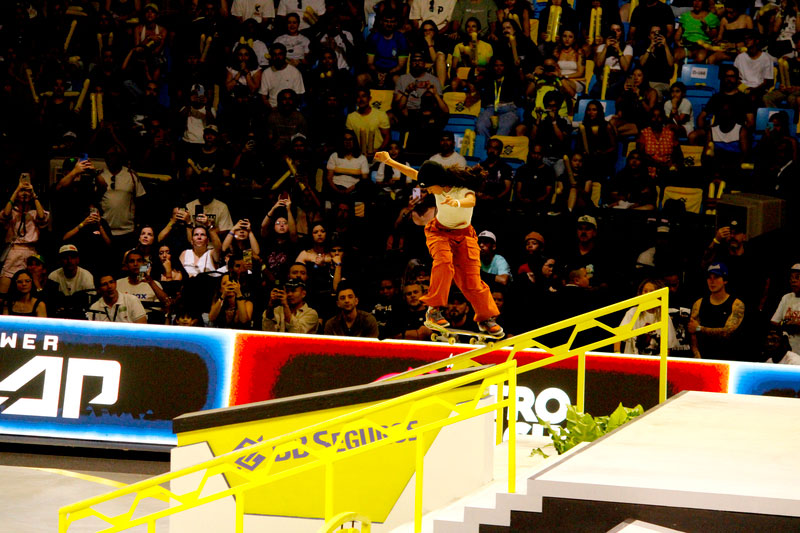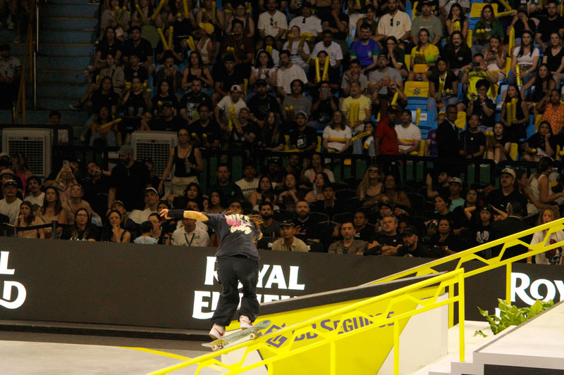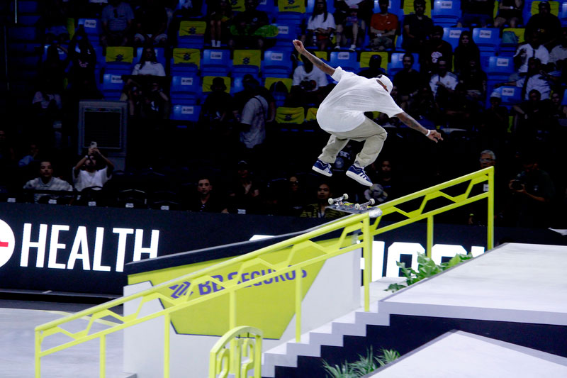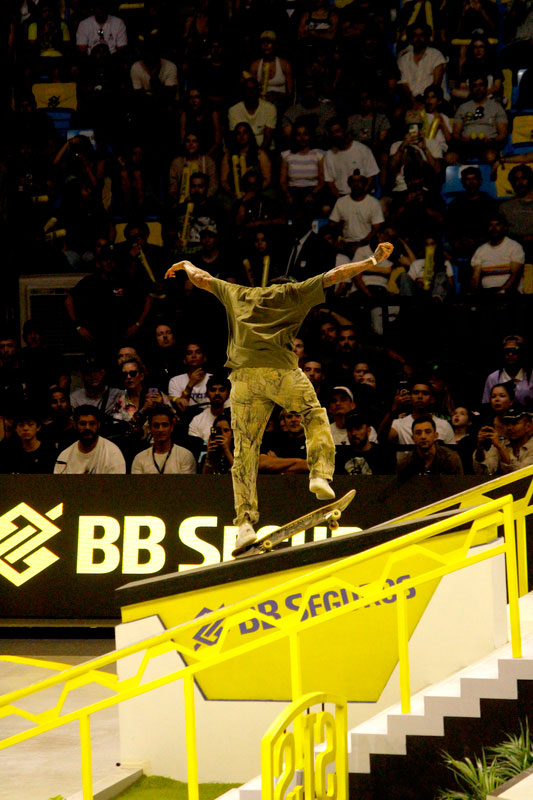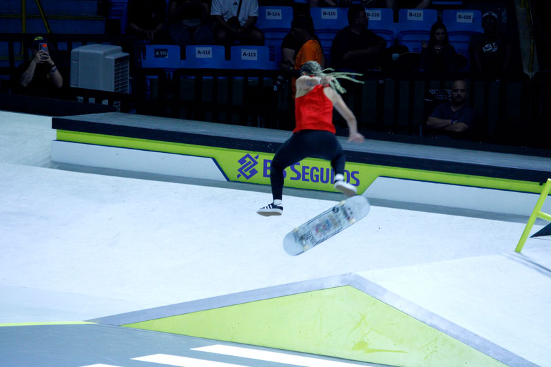 Na sequência, foi a vez da final masculina incendiar o Ginásio do Ibirapuera. Os classificados das eliminatórias — os japoneses Sora Shirai, Kairi Netsuke, Ginwoo Onodera e o peruano Angelo Caro — se juntaram aos líderes do ranking, Nyjah Huston e o brasileiro Giovanni Vianna.