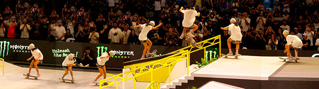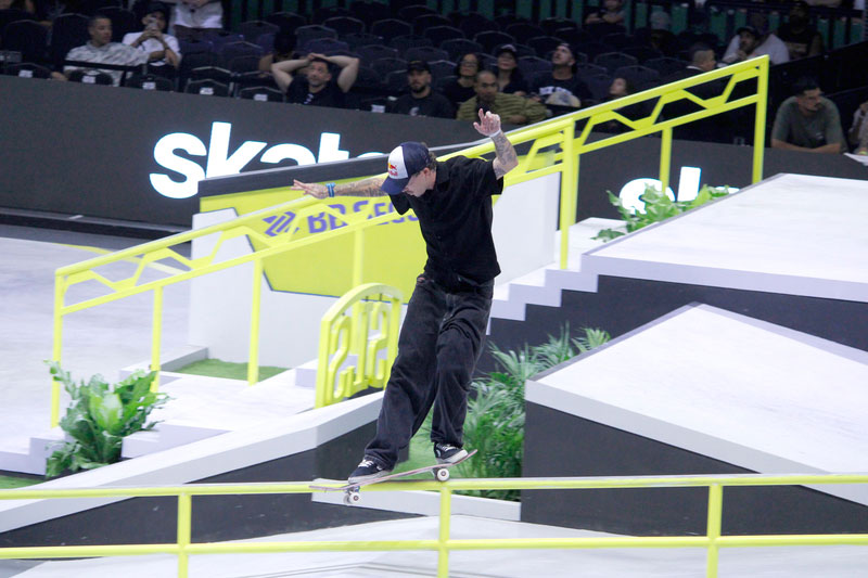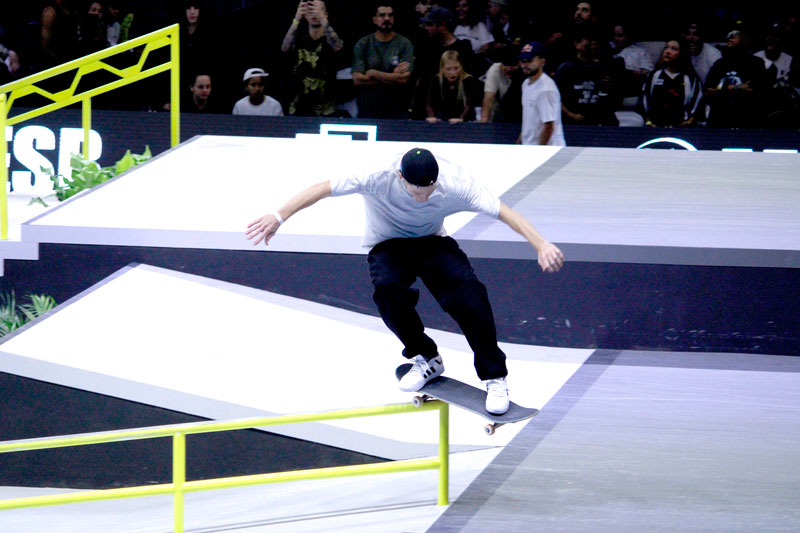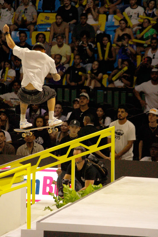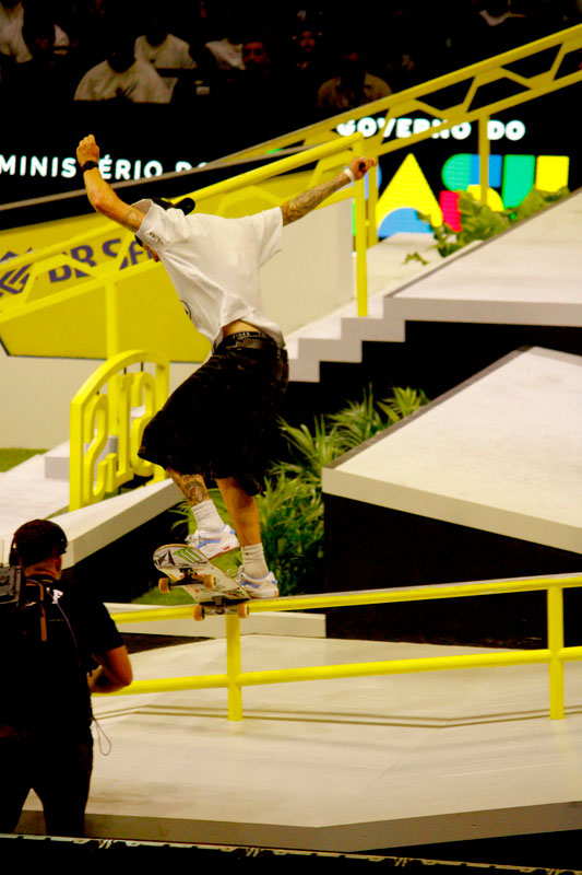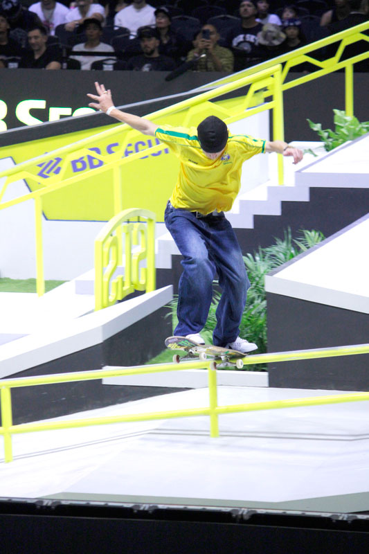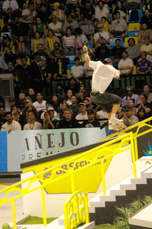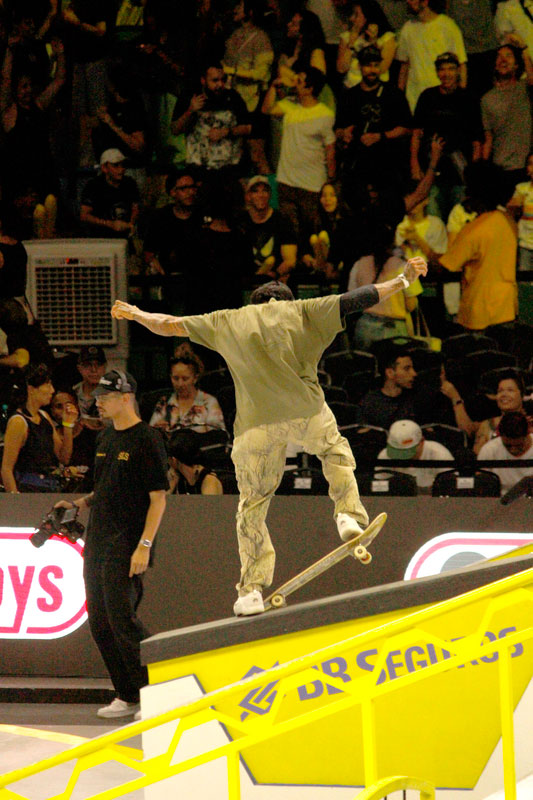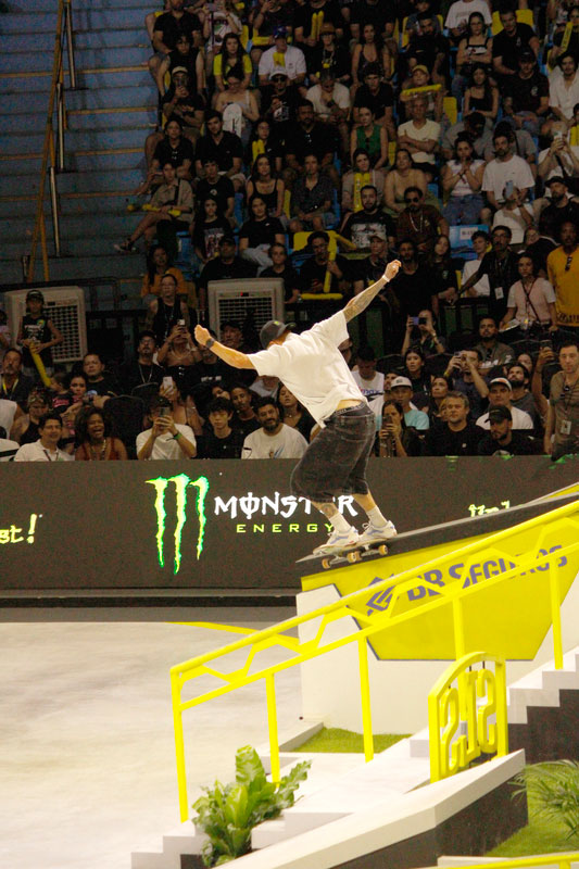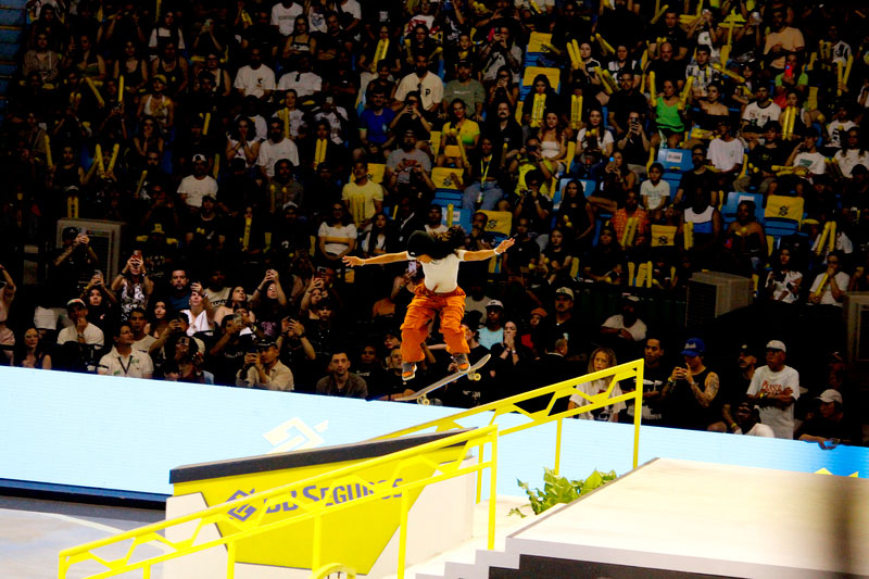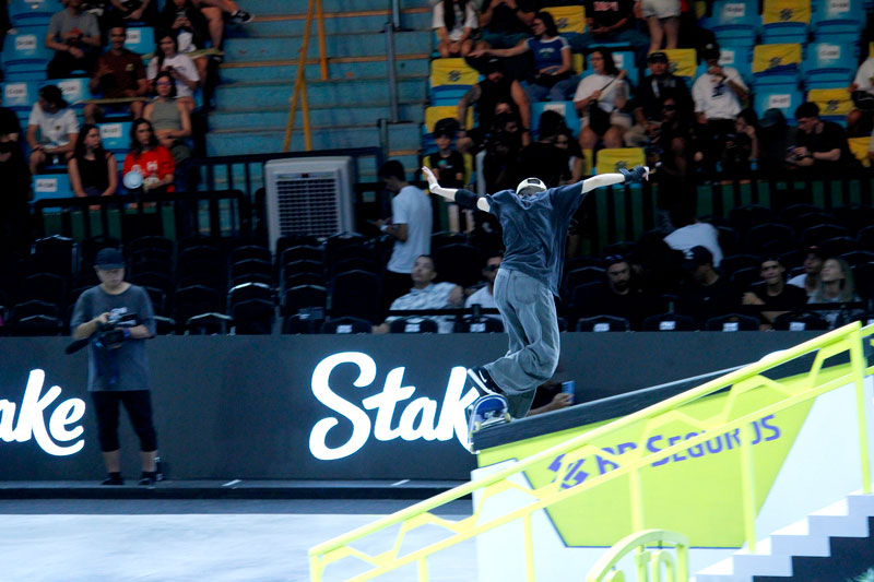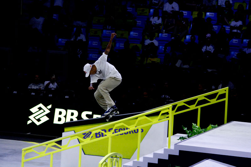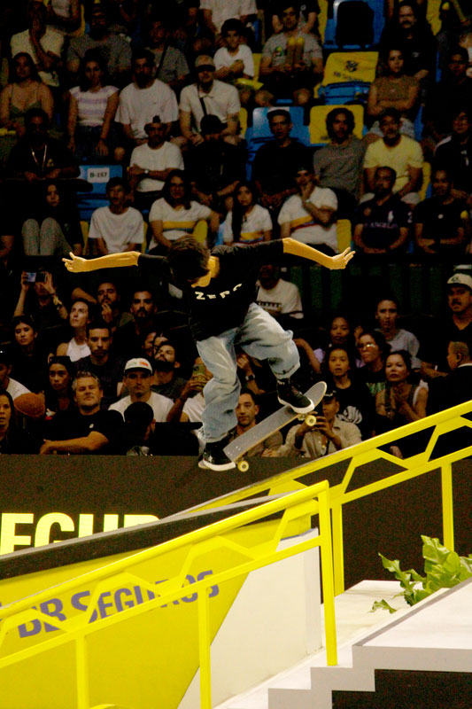 Na sequência, foi a vez da final masculina incendiar o Ginásio do Ibirapuera. Os classificados das eliminatórias — os japoneses Sora Shirai, Kairi Netsuke, Ginwoo Onodera e o peruano Angelo Caro — se juntaram aos líderes do ranking, Nyjah Huston e o brasileiro Giovanni Vianna.