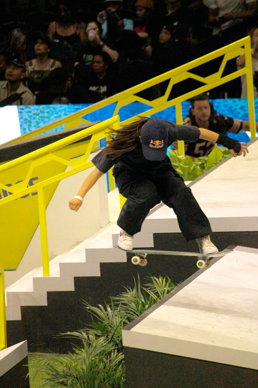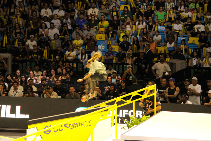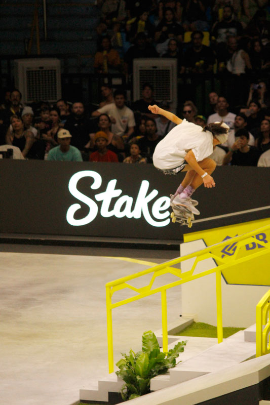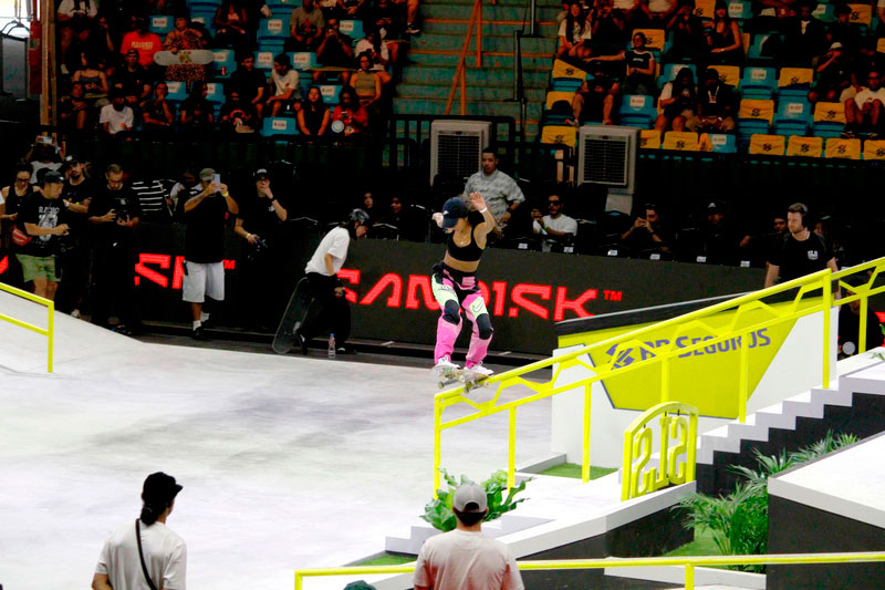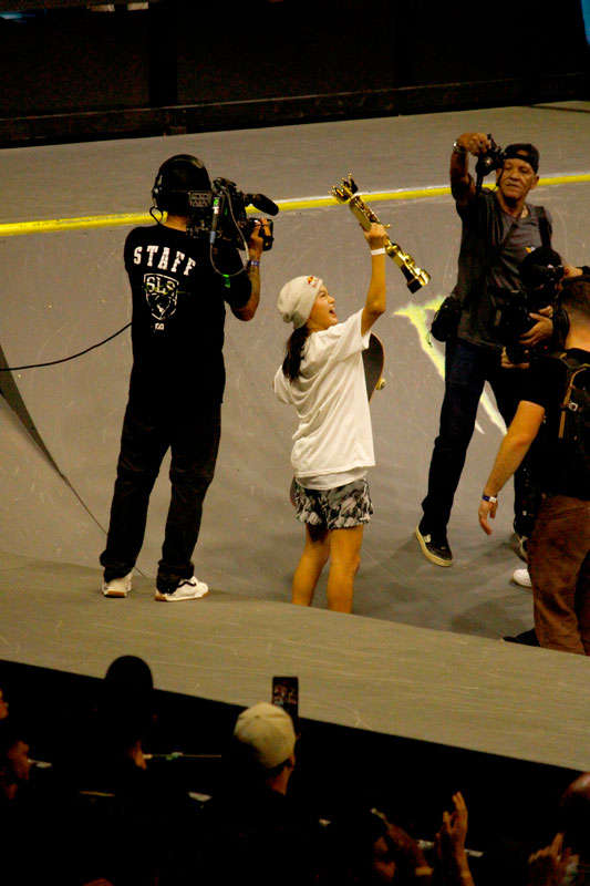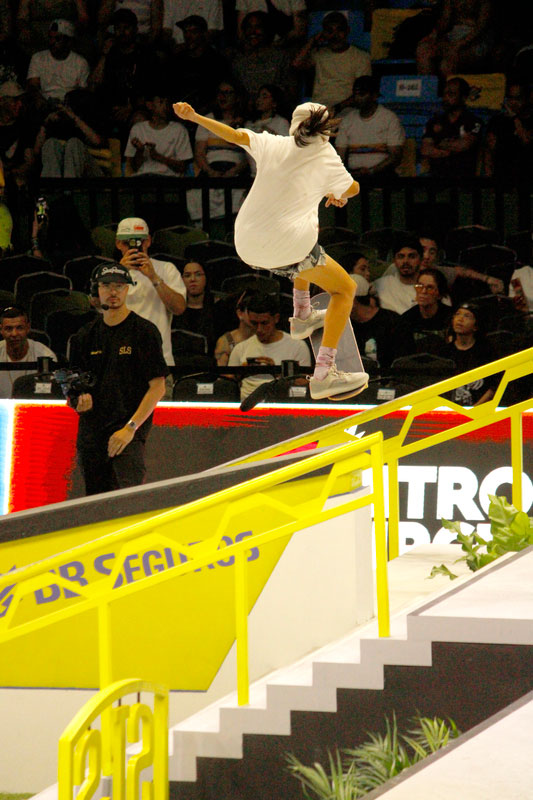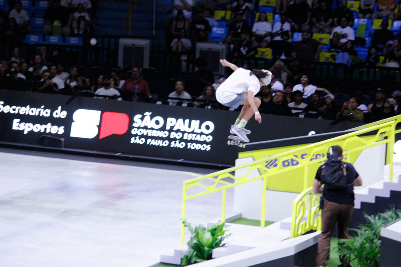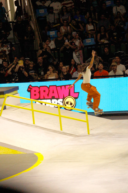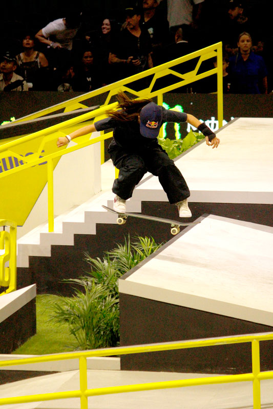 A final contou com as quatro classificadas das eliminatórias de sábado — Coco Yoshizawa, Yumeka Oda, Funa Nakayama e Liz Akama — além das líderes do ranking, Rayssa Leal e Chloe Covell. O nível técnico elevado rendeu ao público uma disputa vibrante, com manobras de precisão e notas altas. O pódio terminou com Rayssa Leal (32.6 pontos), Liz Akama (26.4) e Chloe Covell (25.3).