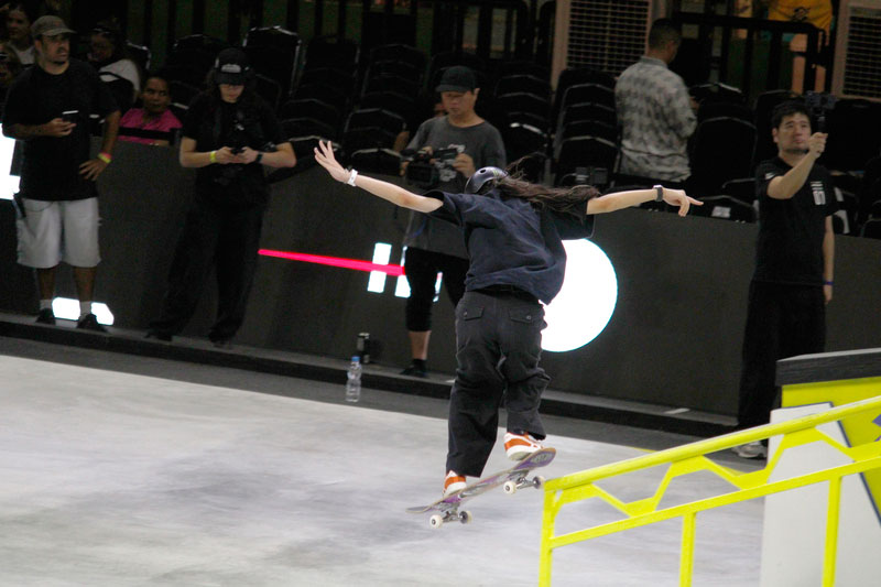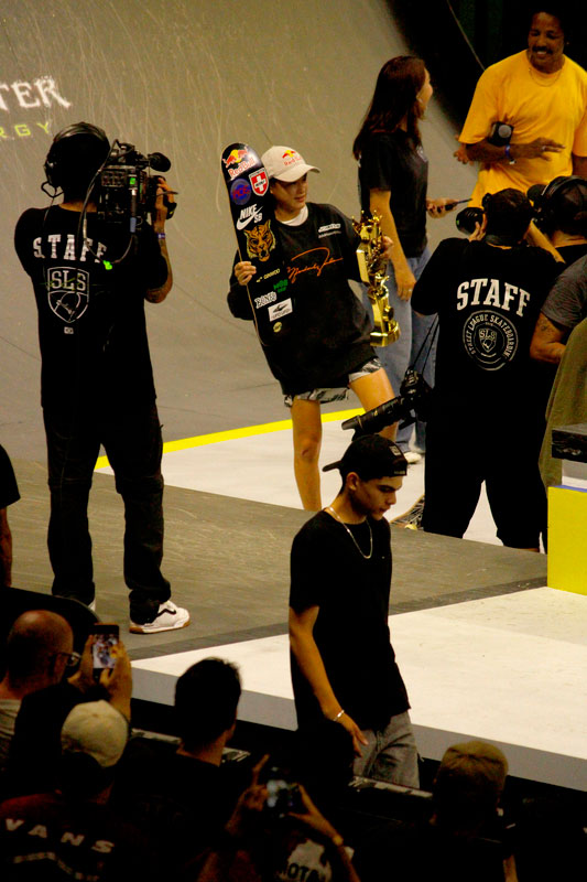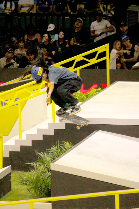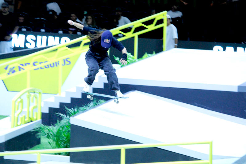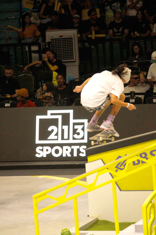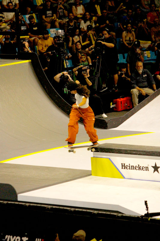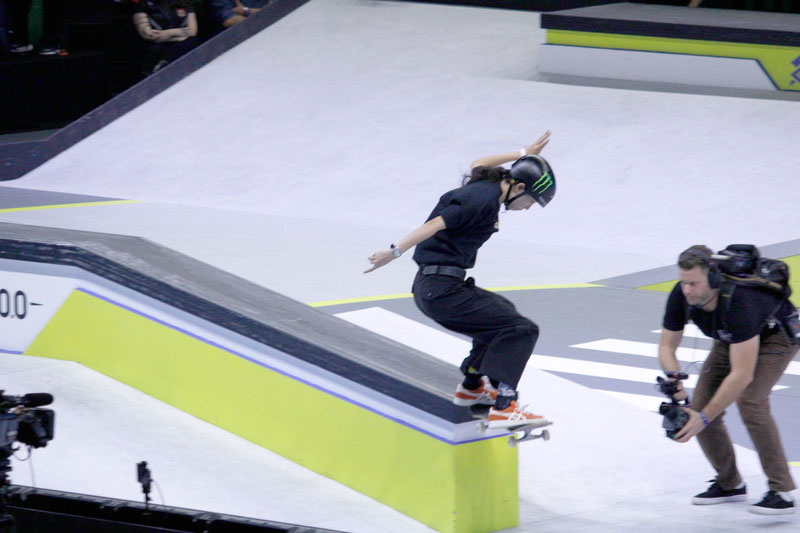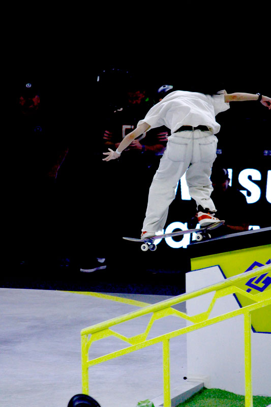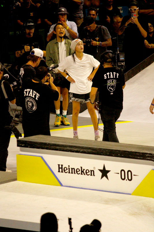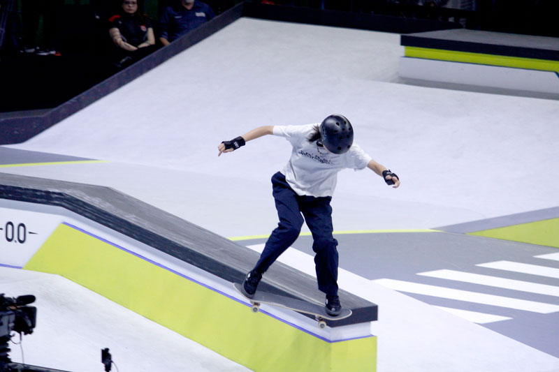 A final contou com as quatro classificadas das eliminatórias de sábado — Coco Yoshizawa, Yumeka Oda, Funa Nakayama e Liz Akama — além das líderes do ranking, Rayssa Leal e Chloe Covell. O nível técnico elevado rendeu ao público uma disputa vibrante, com manobras de precisão e notas altas. O pódio terminou com Rayssa Leal (32.6 pontos), Liz Akama (26.4) e Chloe Covell (25.3).